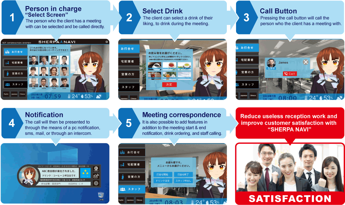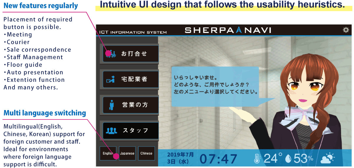Hospitality reception and guidance system "SHERPA NAVI" Features